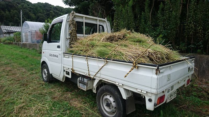 さて去る21日、本六町内会の山田総代が来社され「これから稲刈りをされるので、一緒に行きましょう」とのお誘いがあり、新久田権禰宜と3人で伺いました。