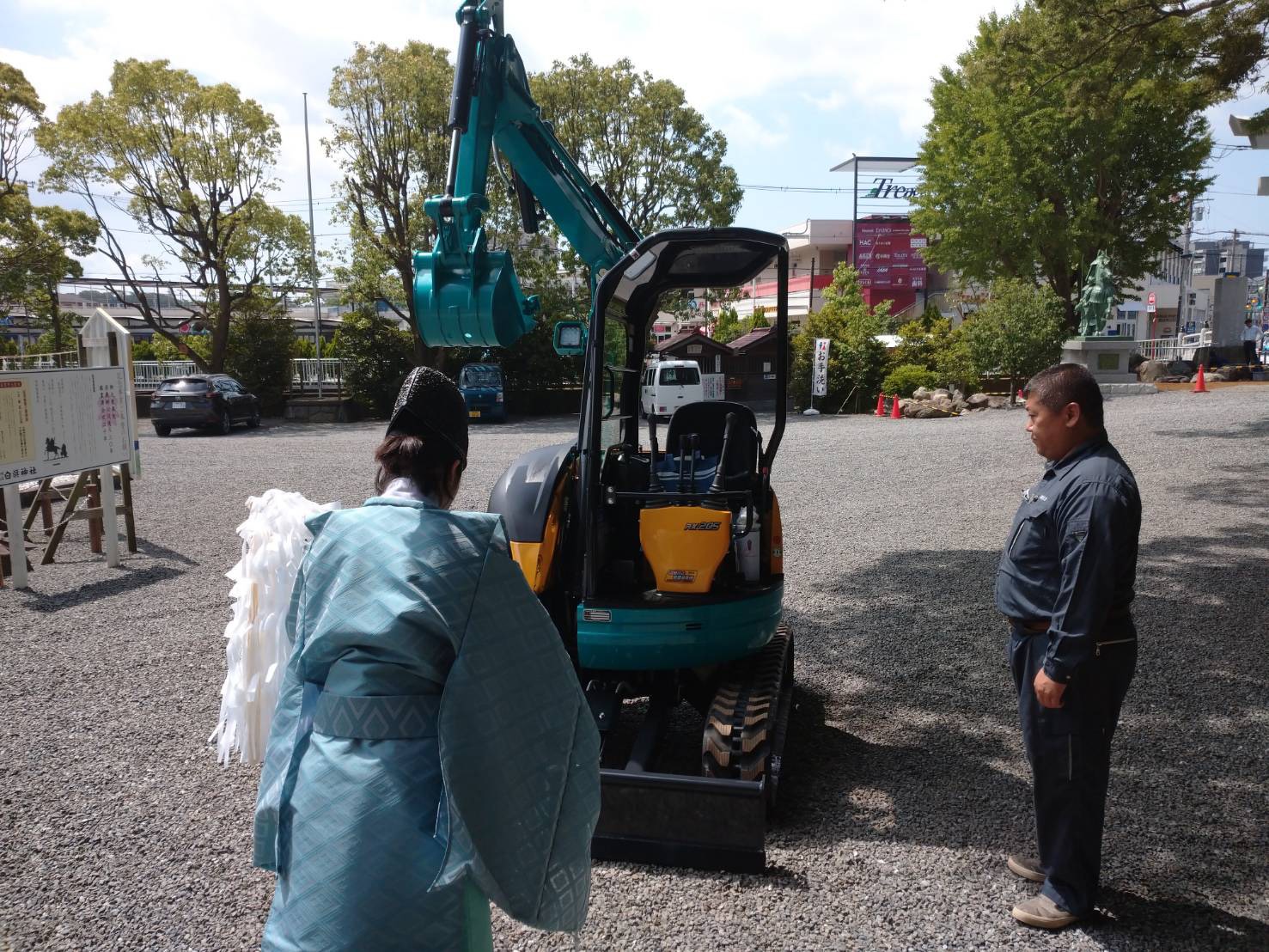 本日朝、当社の鳶頭をお務め下さっている㈱勝栄土建さんの掘削用建設機械(ユンボ)のお祓いが執り行われました。